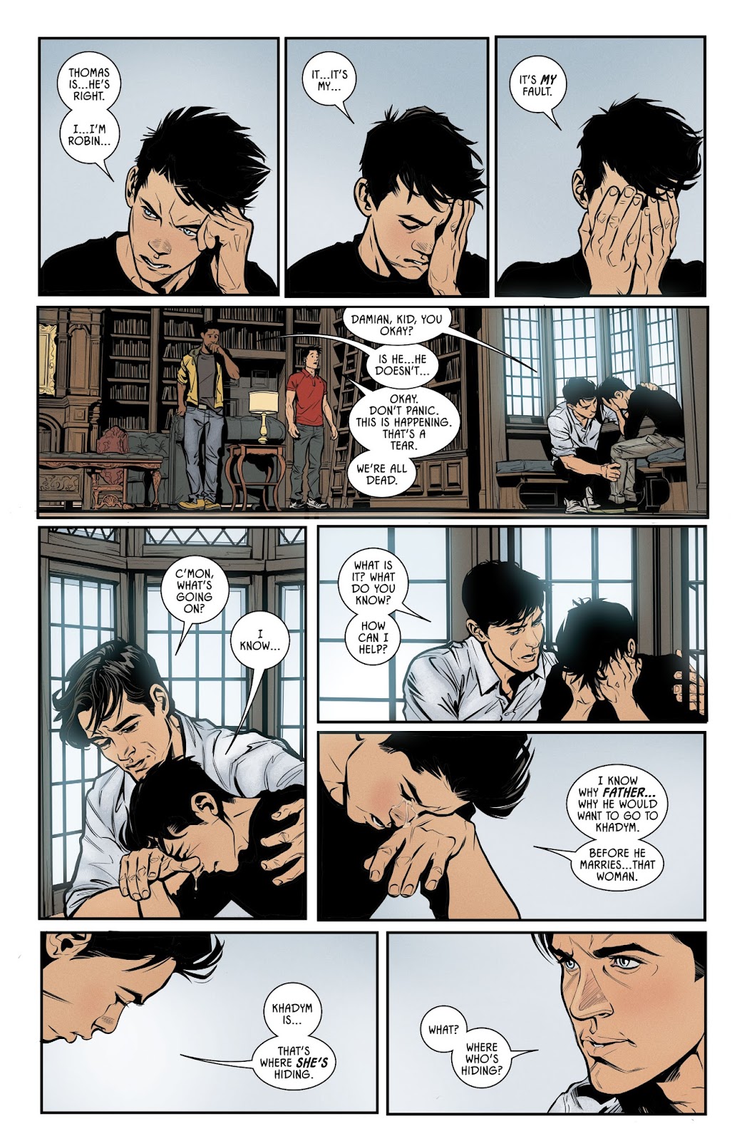 Un bellissimo mini arco dove i punti forti sono il duro Damian che piange per la prima volta, una scena toccante quanto divertente per Jason rassegnato al peggio, siamo tutti morti! Sempre col giovane, viene mostrato il bellissimo rapporto che ha con Dick Greyson, il quale durante la morte di Bruce, ha preso il suo posto sia come Batman che come mentore (ma non so se sia rimasta in continuty), nella consigliatissima serie Batman and Robin. Non manca un siparietto comico tra i due che mi ha fatto molto ridere, per leggerla cliccate qui e qui.