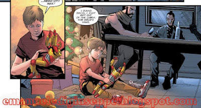He Sees You When You're Sleeping è il primo racconto di questo numero, di sole 10 pagine, ed è l'unico che ho letto e quindi di cui parlo, perché gli altri non sono natalizi e poi di questo universo mi importa veramente poco. Il titolo è una strofa della canzone Santa Claus is Comin to Town che preso da solo risulta piuttosto raccapricciante.